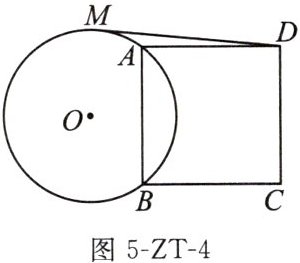 4. 已知$\odot O$与正方形ABCD如图5-ZT-4放置,点A,B,M在$\odot O$上,连接DM.已知$\odot O$的半径为5,$DM= 4\sqrt {7},AB= 8$.求证:DM是$\odot O$的切线.