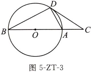 3. 如图5-ZT-3,D为$\odot O$上一点,C是直径BA延长线上的一点,连接CD,且$∠CDA= ∠CBD$.求证:CD是$\odot O$的切线.