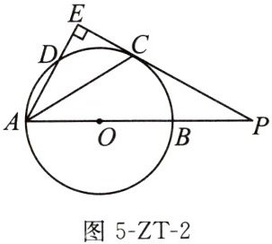 2. 如图5-ZT-2,$Rt△APE$中,$∠AEP= 90^{\circ }$,以AB为直径的$\odot O$交PE于点C,交AE于点D,且AC平分$∠EAP$.求证:PE是$\odot O$的切线.