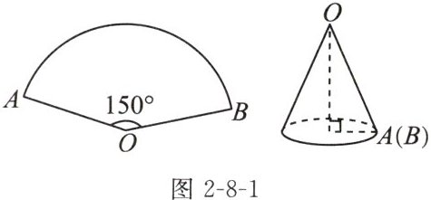 2. (2024 盐城期中)如图 2-8-1,用一个圆心角为 $150^{\circ}$ 的扇形围成一个无底的圆锥. 若这个圆锥底面圆的半径为 2 cm,则这个扇形的半径是______