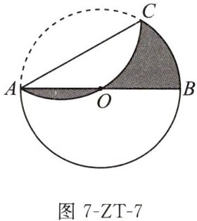 7. 如图7-ZT-7,AB是$\odot O$的直径,且$AB= 4$,C是$\odot O$上一点,将$\widehat {AC}$沿直线AC翻折,若翻折后的圆弧恰好经过点O,则图中阴影部分的面积为