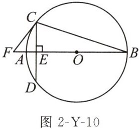 10. (2024 宿迁改编)如图 2-Y-10,在$\odot O$中,AB 是直径,CD 是弦,且$AB⊥CD$,垂足为 E,在 BA 的延长线上取一点 F,连接 CF,使$∠FCD= 2∠B$.