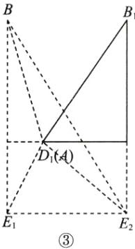 再将$\triangle ABE_{1}$沿 AC 方向平移,使点 A 与点$D_{1}$重合,如图③,得到$\triangle D_{1}B_{1}E_{2}$,连接$E_{1}E_{2},BE_{2}$,则$∠BE_{1}E_{2}=90^{\circ }.$