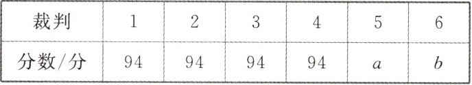 4. (2024南通期中)某校组织了“在阳光下成长”主题演讲比赛,比赛规则:6名裁判打分,去除一个最高分和一个最低分,剩下的4个分数的平均值为该选手成绩,下表是某选手的得分情况: