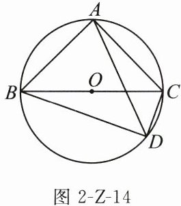 17. 如图2-Z-14,四边形ABDC内接于$\odot O$,BC是直径,$AB = AC$.若$S_{四边形ABDC} = 6cm^{2}$,则$AD = $