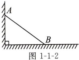 (4)如图1-1-2,长5m的梯子AB斜靠在墙上,梯子底端B到墙面的距离比梯子顶端A到地面的距离多1m。设梯子底端B到墙面的距离是$xm$,怎样用方程来描述其中的数量关系?