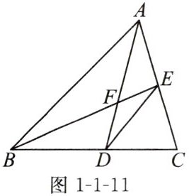 尝试2 (1)如图1-1-11,在△ABC中,点D在BC上,且∠BAD= ∠CAD,E是AC的中点,BE,AD相交于点F。指出图中哪条线段是哪个三角形的角平分线,哪条线段是哪个三角形的中线。