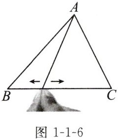 如图1-1-6,橡皮筋的一端固定在△ABC的顶点A处,另一端在边BC上移动。在这个过程中,橡皮筋(线段)的位置不断变化。你认为其中有哪些位置是特殊的?