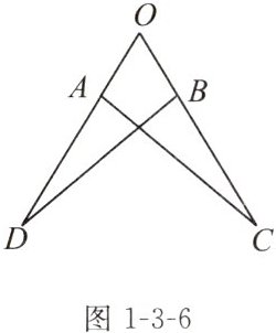 例1(教材典题)如图1-3-6,A,B分别是线段OD,OC上的点,OC= OD,OA= OB.求证:△OAC≌△OBD.
