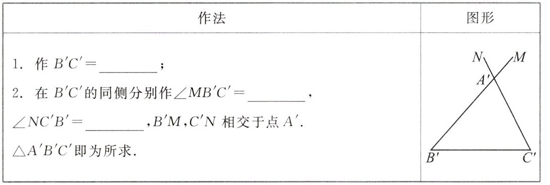 2. 如图1-3-9,给定△ABC,在透明纸上用直尺和圆规作△A'B'C',使得∠B'= ∠B,∠C'= ∠C,B'C'= BC.这两个三角形全等吗?