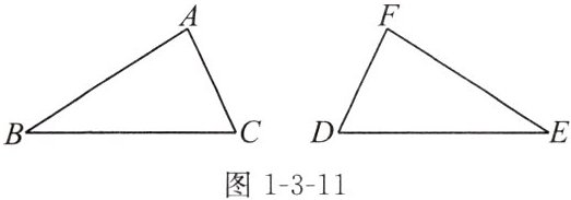 1. 如图1-3-8,用纸板挡住两个三角形的一部分,你能画出这两个三角形吗?如果能,你画的三角形和其他同学画的三角形能完全重合吗?