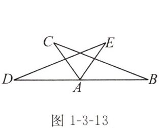(3)如图1-3-13,点D,A,B在同一条直线上,∠CAD= ∠EAB,AE= AC,直接根据“ASA”判定△ABC≌△ADE,则需要添加的一个条件是