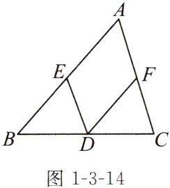 例 (教材典题)如图1-3-14,在△ABC中,D是BC的中点,点E,F分别在AB,AC上,且DE//AC,DF//AB.求证:△EBD≌△FDC.