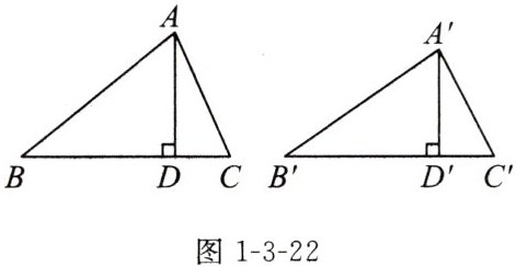 探究 在图1-3-22中,如果AD,A'D'分别是△ABC和△A'B'C'的角平分线(或中线),那么AD与A'D'相等吗? 证明你的结论.