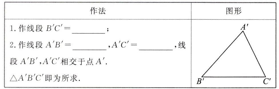 的长为半径画弧,两弧相交于点A';(3)连接A'B',A'C'。△A'B'C'即为所求作的三角形。