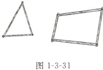 讨论 用三根细木棒钉成一个三角形框架,它的形状会改变吗?为什么?用四根细木棒钉成的四边形框架呢?