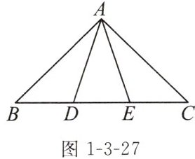 练习 如图1-3-27,在△ABC中,AB= AC,D,E是边BC的三等分点,AD= AE。求证:△ABD≌△ACE。