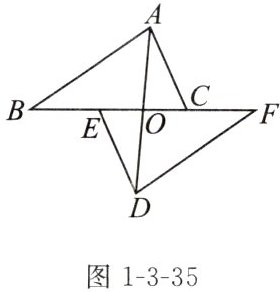 练习2 如图1-3-35,AD,BF相交于点O,点E,C在BF上,BE= FC,AB//DF,AC//DE.求证:AO= DO,CO= EO.