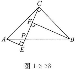 练习2 如图1-3-38,已知△ABC中,∠ACB= 90°,AC= BC,P是线段AB上一点,过点A作AE⊥CP交CP的延长线于点E,过点B作BF⊥CP于点F.则线段AE,BF,EF有怎样的数量关系?请说明理由.