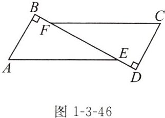 练习1 如图1-3-46,$Rt\triangle ABE与Rt\triangle CDF$中,$∠B,∠D$是直角,边BE,DF在一条直线上,且$BF= DE,CF= AE$.求证:$CF// AE$.