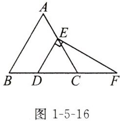 练习2 如图1-5-16,在等边三角形ABC中,点D,E分别在边BC,AC上,且DE//AB,过点E作EF⊥DE,交BC的延长线于点F.求∠F和∠FEC的度数.