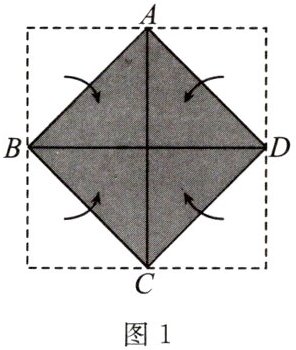 如图1,一张边长为2cm的正方形纸片,取四条边的中点A,B,C,D,将纸片的四个角分别沿着AB,BC,CD,DA对折,得到一个小正方形ABCD.