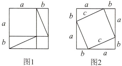 把一个边长为$a + b$的大正方形,用两种不同的方法分割成图1和图2两种情形。