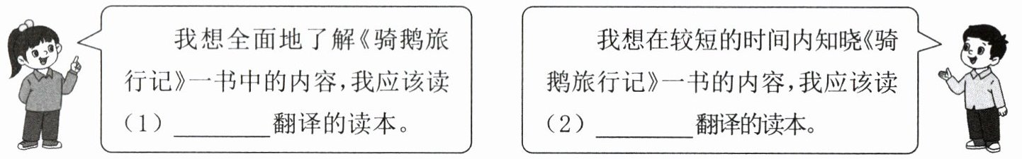 (1)我想全面地了解《骑鹅旅行记》一书中的内容,我应该读______翻译的读本。