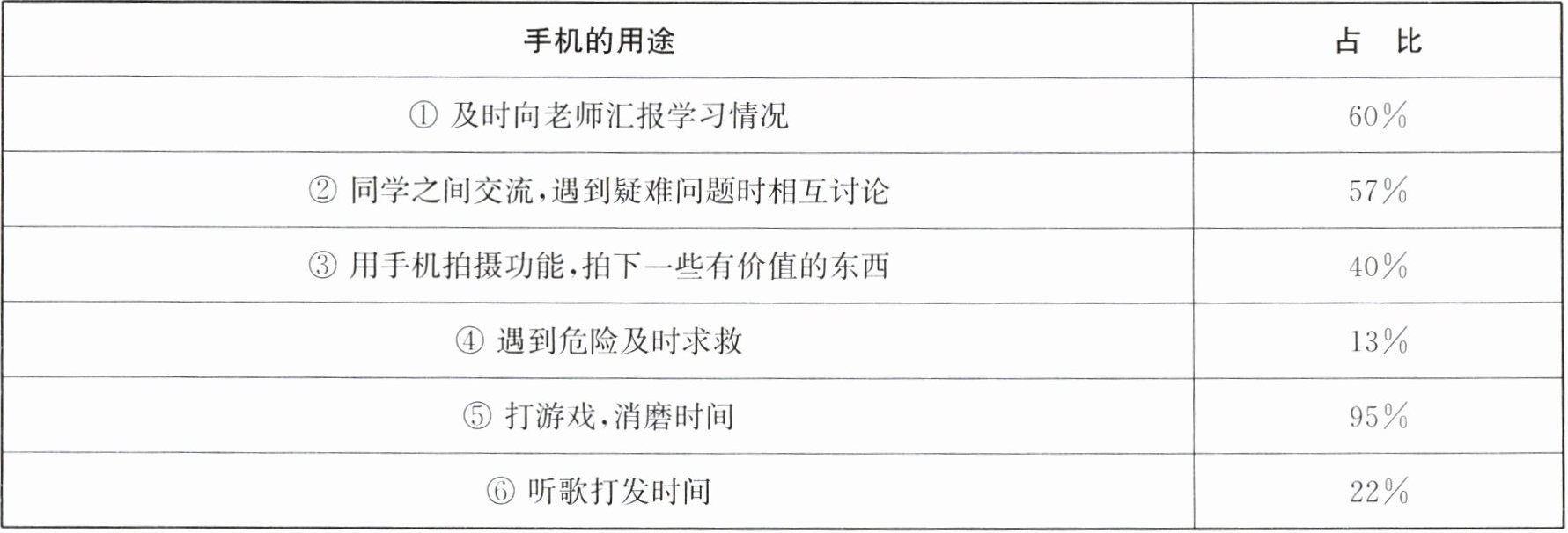 26. 手机是把双刃剑。同学们就“小学生使用手机的利与弊”举行了一场辩论赛。请你将内容补充完整。(3分)