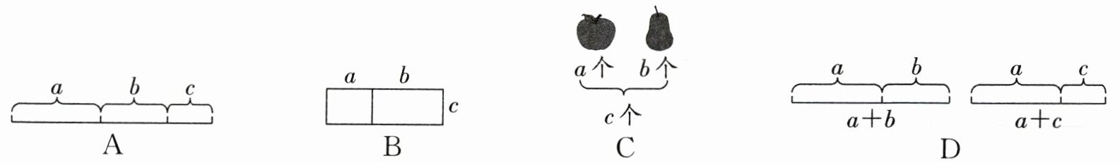 8. 下面能够解释“$a× c + b× c= (a + b)× c$”的是( )。