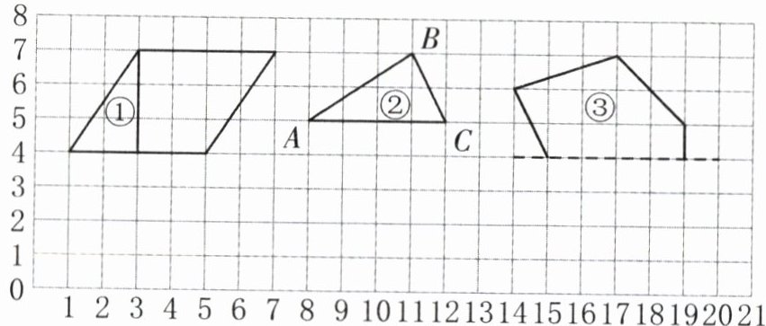 (1)将①号三角形向( )平移( )格,平行四边形就变成了长方形,画出平移后的三角形。(3 分)