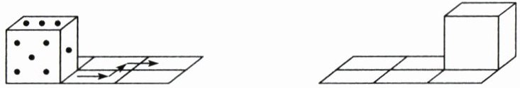12. 一个正方体相对的面分别是 1 点和 2 点、3 点和 4 点、5 点和 6 点。游戏规则如下:在方格棋盘上沿棱按照箭头方向翻动正方体,每次不能后退。开始时正方体的位置如左下图所示,最后翻动到如右下图所示的位置,此时正方体朝上的点数是( )。