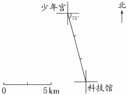 D.科技馆在少年宫南偏东 75°方向 7.5 km 处
