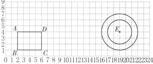 (2)以点 E 为圆心先画两个同心圆,一个圆的直径是 4 厘米,另一个圆的半径是 3 厘米。两个圆之间形成的环形面积是( )平方厘米。(3 分)