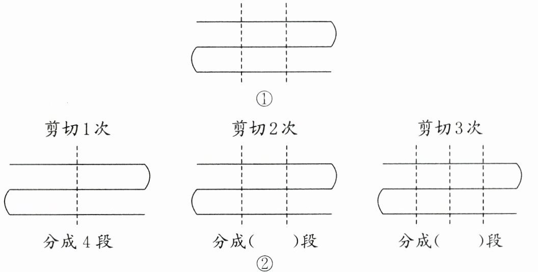 (2)总结:如果剪切次数用 $a$ 表示,分成的段数用 $b$ 表示,那么 $a$ 和 $b$ 的关系是( )。(2 分)