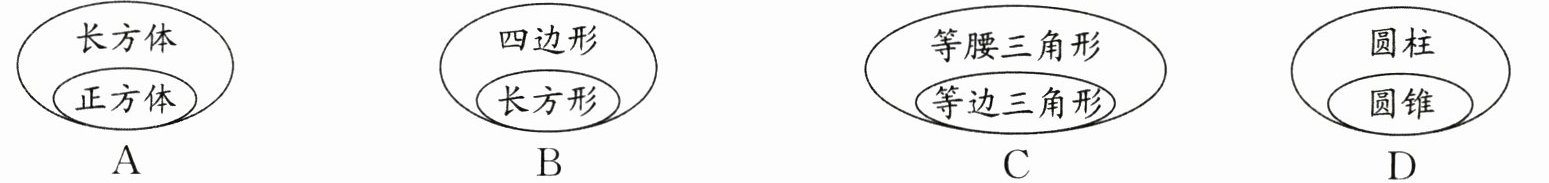 2. 小学阶段认识了许多图形,下面表示图形之间的关系不正确的是( )。