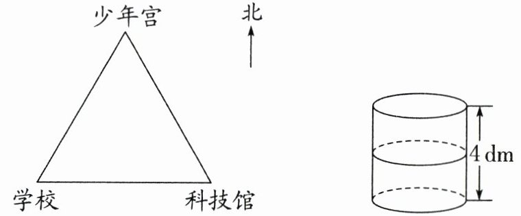 5. 学校、少年宫、科技馆的位置在一个等边三角形的 3 个顶点处(如左下图),同学们从学校出发,先到达科技馆,再向( )方向到达少年宫。