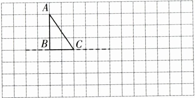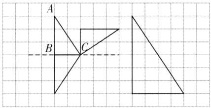 (1) 沿对称轴画出三角形 ABC 的另一半,使它成为一个轴对称图形。(2 分)