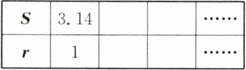 填法不唯一,如12.56 2 28.26 3 结论:圆的面积与半径不成正比例关系 理由:$3.14÷1≠12.56÷2≠28.26÷3$,比值不相等