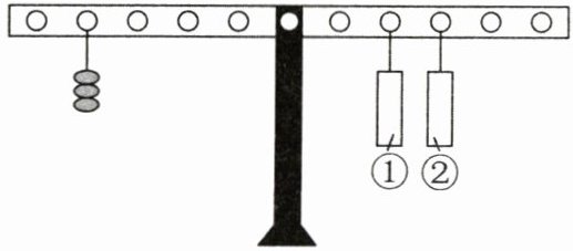16. 小芳做了一个平衡支架开展数学实验(如图),支架上有若干个等距的孔洞。如果在支架左侧从右往左数的第4个孔洞挂3颗珠,那么为了保持平衡,既可以在右侧的①号位置挂( )颗珠,也可以在右侧的②号位置挂( )颗珠。