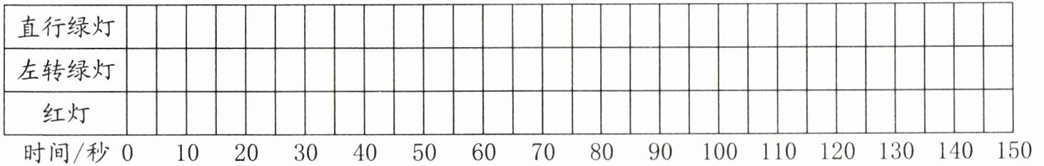 ”画斜线的方法表示亮灯时间,在下图中表示出路口A三个信号灯的变化规律。(3分)