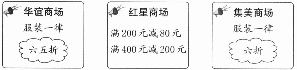 26. 同一品牌的一套运动服标价 560 元,三家商场以不同的方式进行促销。从价格上考虑,你认为到( )购买最划算。