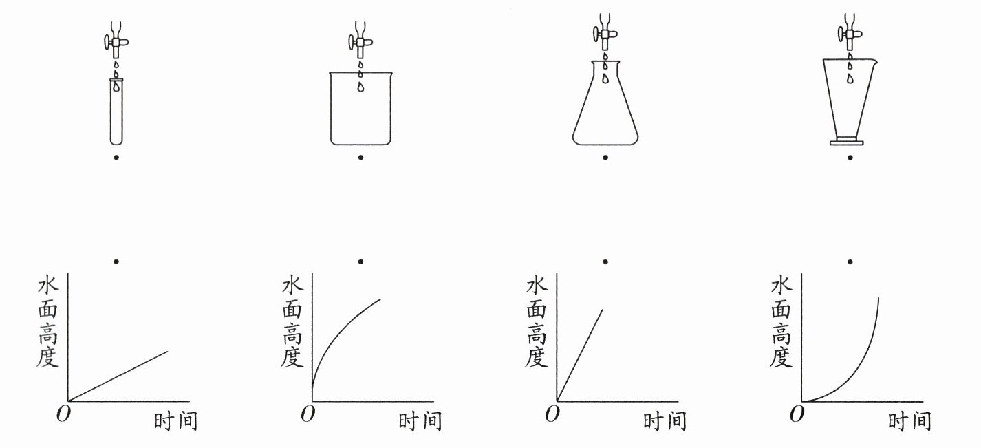 31. 第一行的图是向容器里放水的示意图(放水速度相同),第二行的图表示的是容器中水面高度随放水时间变化的情况(刻度、单位相同),请你把示意图与相应变化情况图连起来。(4 分)