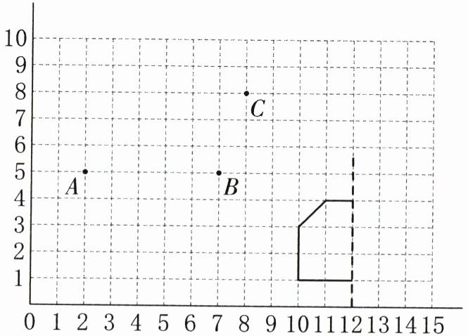 (1)如图,点 A 的位置用数对$(2,5)$表示,点 B 的位置用数对( , )表示,点 C 的位置用数对$(8,8)$表示。请你在图中找出点 D,使得顺次连接四个点可以围成一个平行四边形,将点 D 可能的位置用数对( , )表示。(3 分)