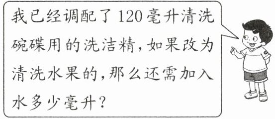 我已经调配了 120 毫升清洗碗碟用的洗洁精,如果改为清洗水果的,那么还需加入水多少毫升?