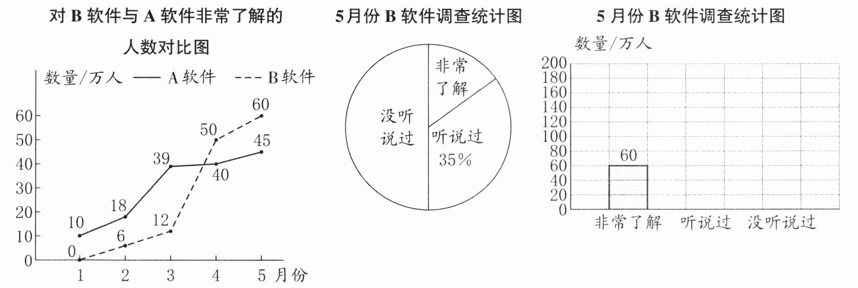 (3) 5 月份,在 B 软件调查中,“非常了解”与“听说过”的人数比是(:)。(1 分)