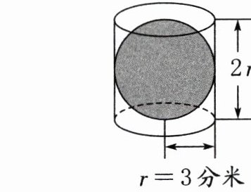 18. 数学家阿基米德用“圆柱容球”实验(如右上图),发现了图中球的体积正好是圆柱体积的$\frac{2}{3}$。如果图中圆柱的底面半径为 3 分米,那么球的体积是( )立方分米。