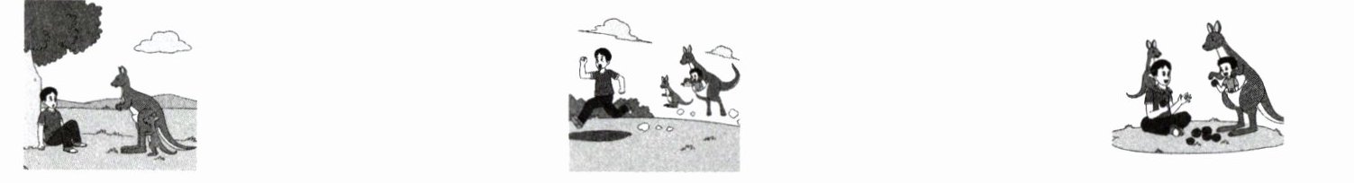 B.Dad began to run. The kangaroos were running after him. "Help! Help!" cried Dad. At that time, Son laughed loudly, "Don't be afraid, Dad! It's me!"