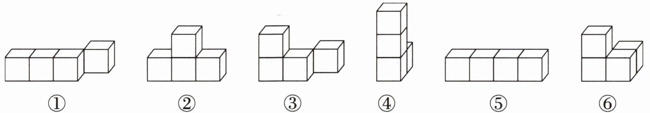 【答案】:①⑤;$4$个小正方形排成一行(形如$\square\square\square\square$);②③⑥;$2$个小正方形上下排列(形如$\begin{matrix}\square\\\square\end{matrix}$)。