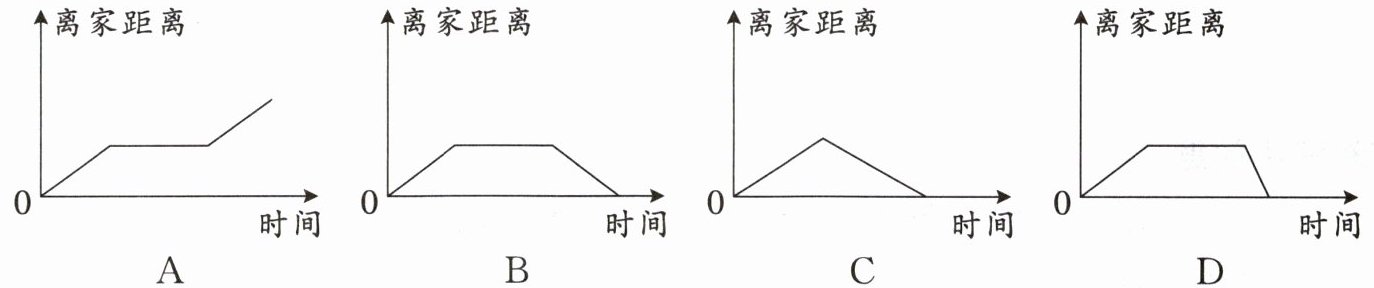 (2)西西从家走到体育馆,到体育馆打了40分钟羽毛球,然后坐公交车原路返回家中。下面能正确描述西西这一过程的图是()。